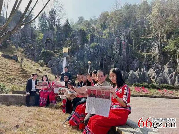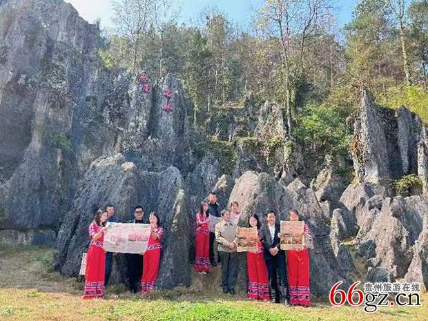 《旅游研学贵州.地理〈神爽梵净山〉》编辑部编辑记者在思南石林采访。廖书铭 摄