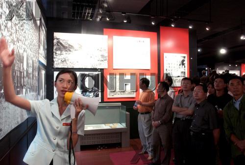 导游在遵义会议陈列馆为游客作讲解