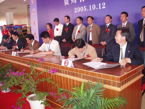 仁怀市政府副市长张家齐向客商们介绍了我市经济社会发展情况和投资环境。他说,仁怀是一个具有优势的城市,拥有广阔的发展空间,资源要素丰富,区位条件独特,投资环境优越。仁怀正面临着难逢的大发展的好机遇,孕育着无限商机,到仁怀来投资一定会满载而归。这次签约有“圆满贯水电站”、“麟龙观景铭苑”等15个项目,共引资12.6亿元。15个签约项目中,合作项目3个,独资项目9个,酒类营销3个。