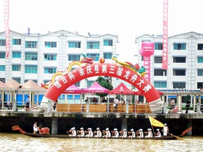 6月6-7日,“信合”杯余庆县第三届龙舟赛在余庆河举行。来自全县11只龙舟、近300名运动员,汇聚在余庆县城宽阔美丽的牛场河水面上,进行500米逆水竞划和抢鸭子比赛。经过2天的紧张角逐,个协队荣获第一名、财税队获第二名、白泥队获第三名、教育队获第四名、卫生队获五名、龙溪队获第六名。抢鸭子比赛,白泥队获第一名、财税队获第二名、教育队获第三名。县委常委、宣传部长韦泽福主持闭幕式;县委常委、常务副县长陈仕明宣布信合杯余庆县第三届龙舟赛闭幕;县委常委、县政法委书记彭绍强出席闭幕式。图为赛事盛况。