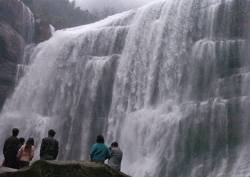 12月11日,游客在观赏贵州赤水市十丈洞瀑布。