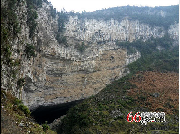 据当地村民介绍,此洞是溶洞群,有旱洞,也有水洞,其中有的洞通洞,洞连洞,洞内景观独特,但要入洞十分困难,30多年前,曾有好奇者从崖上绳吊试图进入,但未能成功。