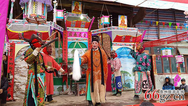 贵州旅游在线讯 4月4日,贵州省正安县中观镇富家坪组举行了民间戏剧“阳戏”演出。