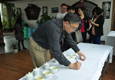 由中国农科院茶叶研究所、国家一级评茶师刘栩,中华全国供销总社杭州茶叶研究院培训中心主任、国家一级评茶师赵玉香,贵州省茶叶专家、国家一级评茶师王亚兰等茶叶专家组成的评审团,按照国家最新审评标准“五项因子”评审法,通过干看(条索、嫩度、色泽、均净度),湿看(汤色、香气、滋味、叶底)最终评选出扁形茶王和颗粒形茶王各1名。另有娄山春茶叶专业合作社选送的卷曲形茶获得卷曲形茶第一名。