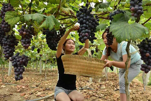 葡萄园负责人告诉笔者,葡萄成熟已有将近半个月了,整个采摘期在两个月左右。每天都有市民前来采摘购买葡萄,周末时人最多,采摘高峰期时可达到每天200人次左右,日销售金额在5000到7000元之间,早熟期品种早黑提、中晚期成熟品种甬优、紫秋最受顾客青睐。