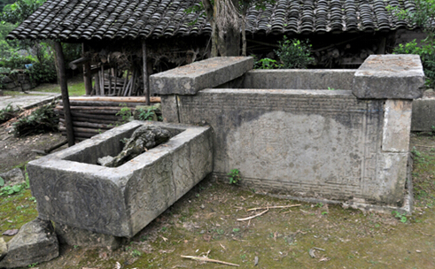 岩门头杨秀彬老宅院坝中的石水缸。