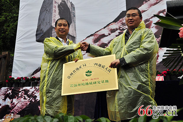 开幕式上的授牌仪式,双河溶洞国家地质公园成为岩溶环境地质研究基地