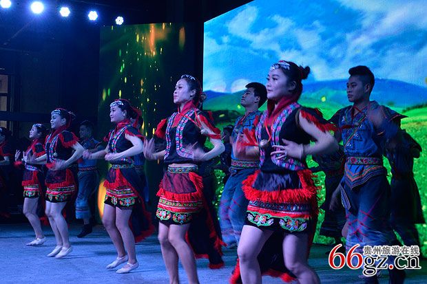 在非遗展演的舞台,一共十个精彩的节目贯穿全程。开场舞蹈《欢腾的仡佬山寨》点燃了现场观众的热情;男子群舞《古傩祭》充满了神秘肃穆的傩文化气息;仡佬族歌舞《茶山情歌》唱出了阿哥阿妹情意长。丰富多彩的仡佬族歌舞节目快速无缝的让观众感受着来自务川仡佬族人民的热情。