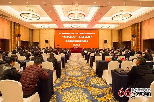 遵义市委常委、市人民政府副市长吴建辉,市旅发委主任钱世容应邀出席,观印象艺术发展有限公司董事长陈劲松,播州区四大班子及有关单位代表,部分省市新闻媒体等共计200余人参加了签约仪式。