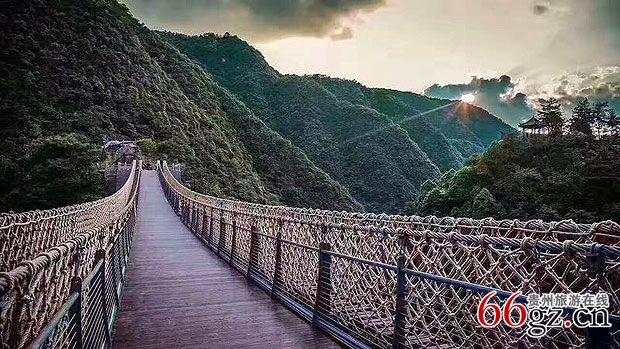 长空桥为铁索木板桥,桥名源于毛泽东《忆秦娥·娄山关》词句“长空雁叫霜晨月”,该桥长100米,宽5米,长桥似凌空虹桥,将大尖山和小尖山间的景观连接起来。