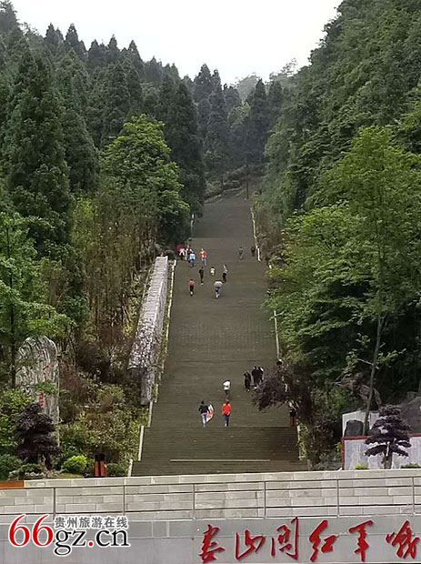 百仗梯是“娄山十景”第一景,梯名源于毛泽东《忆秦娥·娄山关》词句“而今迈步从头越”,自陈列馆起至大小尖山登山步道入口处,上下高差80米,台阶365步,一年也是365天,寓意着每一天都是崭新的,激励我们走好今天的长征路。石阶两侧以雕塑小品、浮雕景墙等表现方式,展示了长征的首次大捷——娄山关战斗以及发生在娄山关的一系列著名战役。