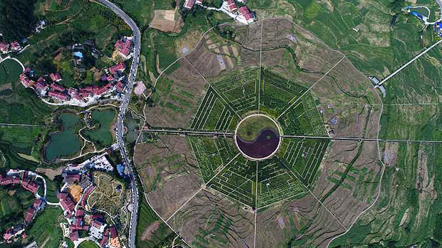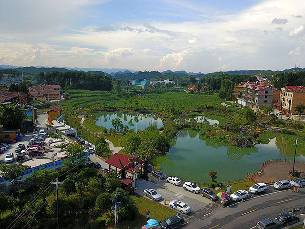在仁怀市坛厂镇,当地政府根据地势,建造了一个占地300多亩的八卦图形状的乡村旅游园区,吸引远近游客前往观光。