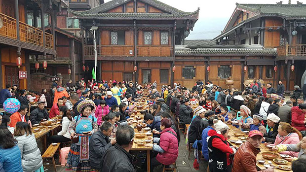 春节期间,为弘扬民族文化,烘托节日气氛,遵义各地积极推出游客参与性、互动性活动项目,为游客和市民营造了红红火火、和谐健康过年的热闹氛围。2018年“春节”假期第三天,遵义市接待游客40.98万人次,实现旅游综合收入2.36亿元。