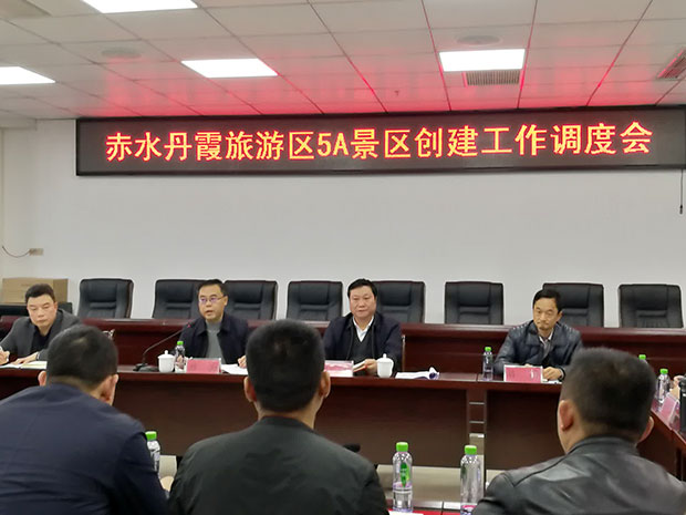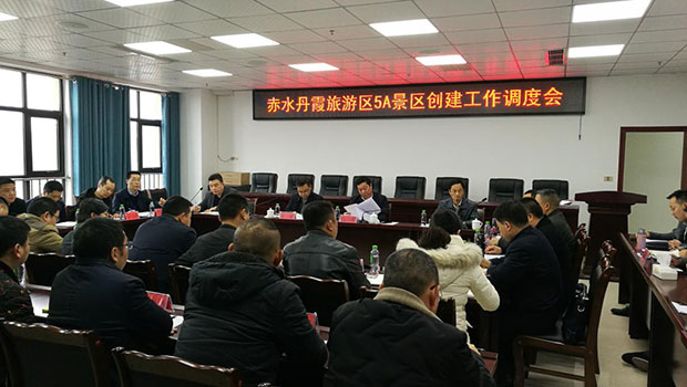 近日,赤水丹霞旅游区5A景区创建工作调度会在市文体旅游局11楼会议室召开,市人民政府市长谭海、市政协主席吕平等市领导出席会议,各有关单位、乡镇、企业参加了会议,会议对5A创建工作作了重要安排和部署。