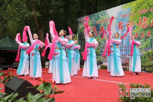 “舞动·绿水青山”西南地区广场舞大赛在赤水国家风景名胜区四洞沟景区举行,来自重庆、四川、贵州的十二支广场舞队伍嗨翻现场。