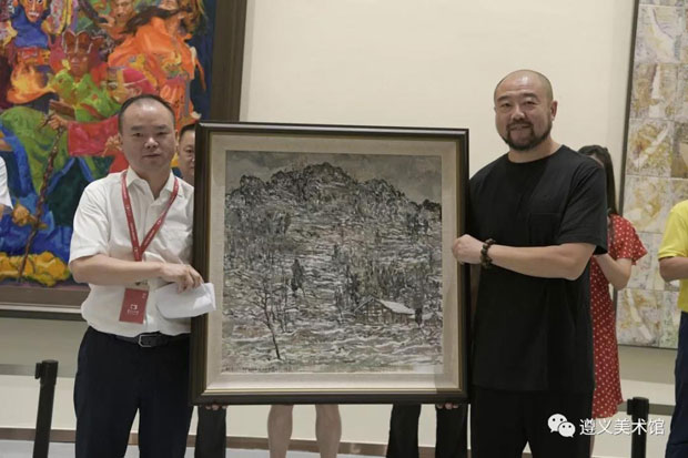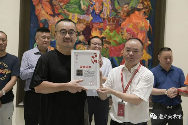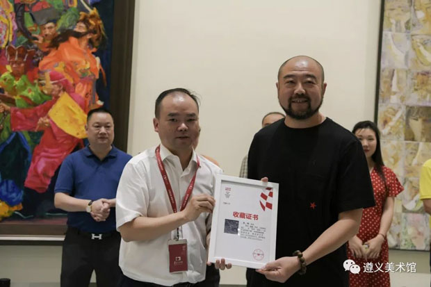 赵竹先生、耿翊先生向遵义美术馆捐赠油画作品,刘德同志向两位艺术家颁发收藏证书。