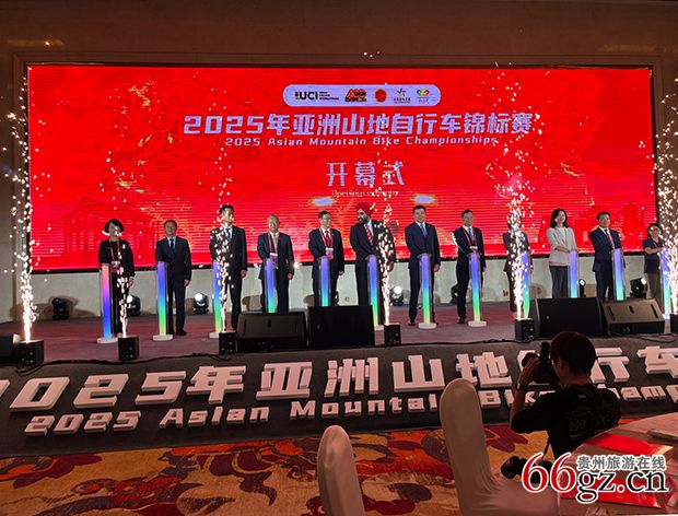 4月22日晚,2025 亚洲山地自行车顶级赛事、2025亚洲山地自行车锦标赛(简称锦标赛,在中国历史文化名城遵义的遵义.贵州饭店隆重开幕,亚洲自行车运动联合会、中国自行车运动联合会、贵州省体育局和有关单位领导,运动员、教练员、裁判员、赛事工作者、志愿者代表,及关心支持遵义体育事业发展的各级领导、各界人士,共同见证亚洲自行车运动的这一大型赛事。