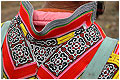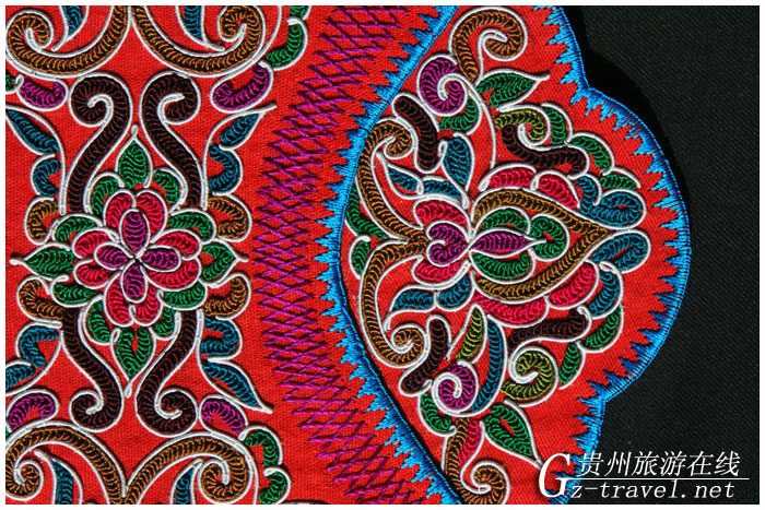 刺绣主要用做于服装中的头巾、衣领、袖腰、袖口、衣肩、衣背、衣摆、腰带、围腰、裙子、裹腿布巾、鞋子及围兜等部位的装饰。是以丝线、毛线或色布等在各种衣料、布料胚上用针刺、缝钉等构成花纹。<br> 刺绣技法大致有12类:平绣、挑花、锁绣、堆花、贴布、打籽绣、破线绣、钉线绣、辫绣、锡绣、马尾绣等。