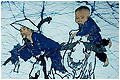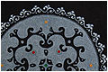 蜡染在贵州已有2000多年的历史。苗族、布依族、革家蜡染各具特色。<br>   用特制的蜡刀蘸上融化的蜡,描绘花、鸟、虫、鱼于白土布上,放入靛蓝染液中浸染,然后加温煮化蜡块,留下图案,蜡染图案清新明快,线条秀丽洒脱,具有浓郁的民族特色和贵州高原古朴风味。