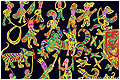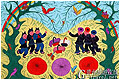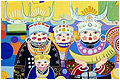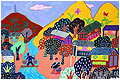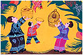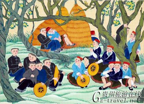 贵州是一个多民族省份,各民族群在生活中保持和流传着的光彩夺目的民族民间工艺美术传统被巧妙的运用在绘画作品中,取材于现实生活,散发出浓郁的乡土气息;继承和运用民间传统手法,处理大胆,手法泼辣;强调色彩的鲜明对比,增强了美的韵味;人物造型既夸张变形,又不丑化