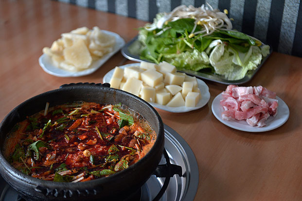 一锅底料,无论是酸辣底料还是麻辣底料,加上凉粉、肉片、藕片、二块粑、冻魔芋等配菜,煮成一锅,就能美美地吃上一顿,经济实惠又丰盛可口。这些小菜中,最传统也是必点的就是切成方块的凉粉。