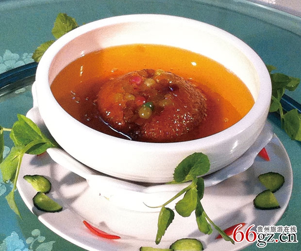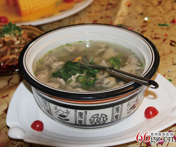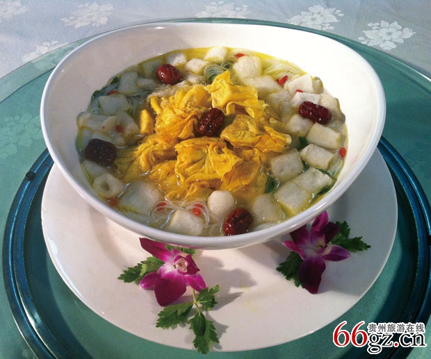 “水八碗”是贵州省织金县的特色美食。顾名思义,就是有八个汤菜。在织金,每逢红、白大事的宴席上都少不了“水八碗”,是最具乡土风情的传统宴席。