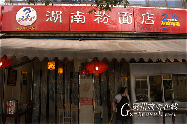 这家湖南面是贵阳市的第二家分店了,总店在护国路,友谊路的店面不是很大,就是两小间门面,十来张桌子,老板一般很少在店里,都是服务员在店里招呼客人,可是这并不影响他们家的生意,总是人满为患,人多的时候时常排队到隔壁的小超市门口。