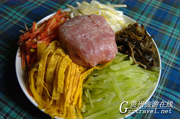 所谓五彩,就是胡萝卜的红,莴笋的绿,木耳的黑,鸡蛋皮的黄,菜心的白,加上鸡肉的细嫩肉质,可谓是将美食的“色”“香”“味”发挥得淋漓尽致。