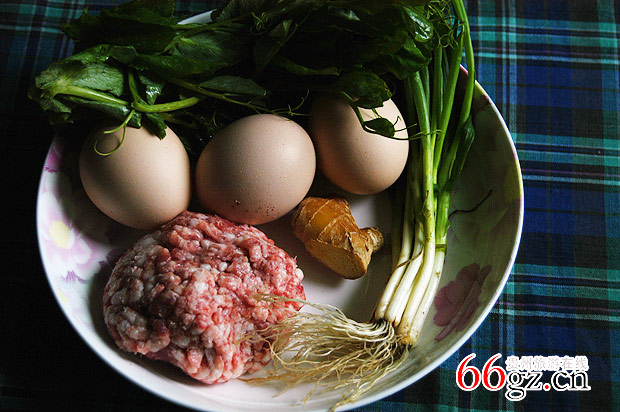 鸡蛋、猪肉、葱花、生姜、食盐、味精、蔬菜、食用油