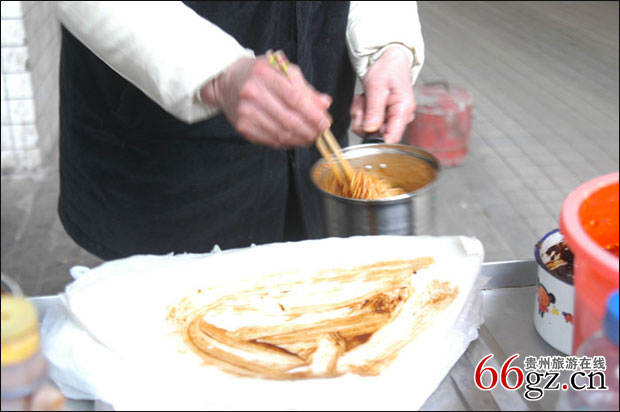 杨姨妈春卷都是自己当天早上自己亲自去市场选购食材,然后自己亲手做每一种配菜,特别是他们家春卷里面包的凉面吃起来口感特别好,清爽又细腻,在别家很难吃到这样的口感。而且他家的辣椒特别的香,是那种吃起来又香又辣但又辣的开胃不会辣的吃不下东西的那种辣,再加上其它的小配菜伴在一起包在薄薄的凉皮里面,吃起来那是真正的美味啊。值得一提的是包春卷用的手工凉皮,这种凉皮是把米放在水中泡过之后然后把米磨成米浆,再把米浆通过高温蒸的方式,最后变成需要的皮料。这种手工凉皮吃起来非常的细软,很可口。
