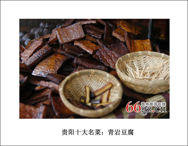 当你慢悠悠的走在青岩古镇的街上会发现见到最多的是豆腐,当你走进任何一家豆腐作坊,都会看见石磨清水流过,滤布洁白,摆放豆腐的桌子也是一尘不染,烘烤豆腐的灶台干干净净,做豆腐的人更是清清爽爽。青岩的豆腐有十几道工序,要想让豆腐都能做成干货远走四方,自然在烘、烤、炒几方面手艺那都必须是一流的。而且青岩的豆腐都是用酸汤点的,不用石膏。所以一般人很难看到豆腐的整个完全生产流程,据说许多人家都是习惯在晚上开工。
