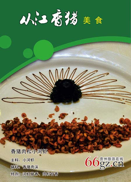 小河虾营养丰富,脆香,加上香猪肉松的甘香口感成为一道不可多得的美味。且小河虾易消化,对身体虚弱以及病后需要调养的人是极好的食物,同时适宜中老年人缺钙所致的小腿抽筋者食用。