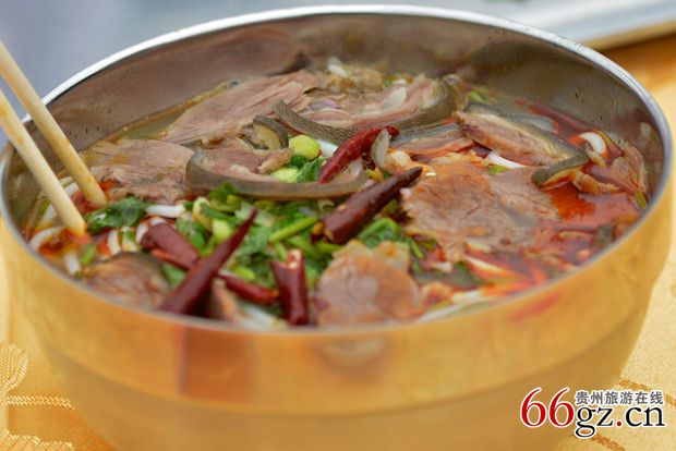 在剑河这个不大的小县城里你可以品尝到变了味的遵义羊肉粉。怎么说是变了味呢?里面放了杨记秘制的羊瘪,这羊瘪有清热退凉的功效而且味道苦中带一点涩味,爱这一口的人啊一提到便流哈喇子啦,吃不惯的叫他闻一下都不会愿意的。所以要以个人口味适当放。