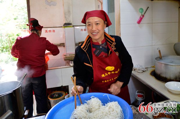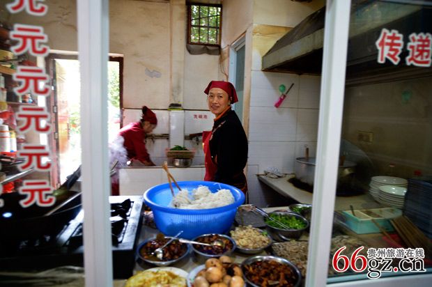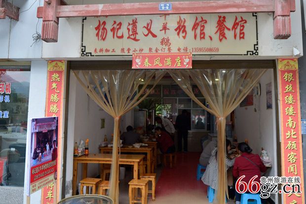 朴实的杨记夫妇经营这家店多年,食客来主要就是冲着独特的味道和齐全的配料。这汤是纯原汤熬制,而且肉每天都是新鲜的,就连这瘪也是每天清晨到菜场收购最新鲜的。他家的粉透着夫妇俩的品格——实在,超级大碗里配料足粉多。老板肖昌平这样说“瘪好吃最关键的是煮瘪时的火候和在瘪中加的香料”。杨记在第一届“舌尖上的剑河”美食大赛中从众多粉中脱颖而出获得三等奖的好成绩。如果您到剑河来一定要来尝尝这融入了剑河独特风味改良后的杨记遵义羊瘪羊肉粉。