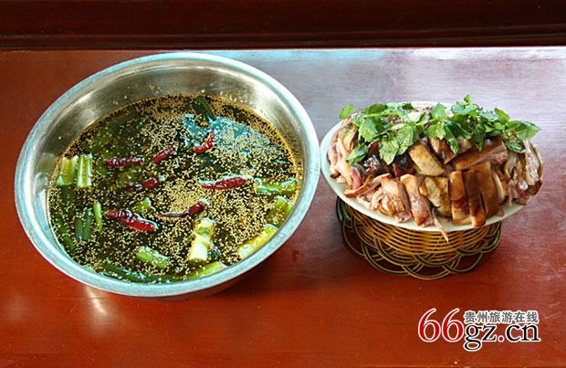 贵州省黔南州罗甸县独创的“稻草清汤脆皮狗肉火锅”用料考究制作方法独特,其汤汁有一种独特的稻草清香,带皮的狗肉肉嫩皮糯。煮出来的狗肉不但香而不腻,瘦而不柴,汤鲜爽口。奇香的口感倍受省内外美食家的赞誉,名震四方。