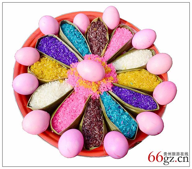 这件事一传十,十传百,每逢“三月三”、“四月八”、“六月六”等民族节日,布依人家都要仿效三姑娘家,蒸制五花糯米饭,用以招待客人。