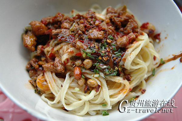 制法是先将绿豆、大米浸泡,细磨成浆汁,然后将浆汁舀入烧热的大锅里,用刮浆器将浆汁沿锅周围刮开刮薄铺匀,待焙熟后,再翻面焙干水分成绿黄色,内起蜂窝,起锅即成大块粉片,常将之卷成扁筒状,食用时切成细条,稍煮捞起,拌以香酥的脆臊,及香油辣椒,色泽鲜艳,香气诱人,味美可口。