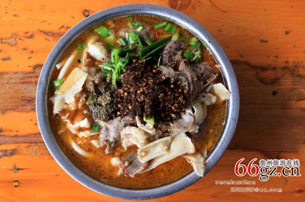 羊肉粉是贵州地区,特别是遵义的一种著名小吃。以新鲜羊肉,配以爽滑的米粉,加入鲜羊肉汤,及各种调料和具有特色的油辣椒.其特色为香、鲜。米粉入口即化,老少兼宜,羊肉肥瘦适中,油而不腻。