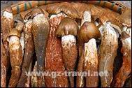 松茸是野生的珍贵真菌。学名松口蘑, 名叫大花菌、松菌、剥皮菌。是名贵食用菌,在日本有“蘑菇之王”的称誉。松茸属担子菌纲,生长于松林地和针阔叶混交林地,每年七、八、九月出菇。云南省山多林茂,适宜松茸生长,滇西北和滇中一带盛产松茸。新鲜的松茸,形若伞状,色泽鲜明,菌盖呈褐色,菌柄为白色,均有纤维状茸毛鳞片,菌肉肥厚嫩白,有浓郁的特殊香气。松茸营养丰富,含有蛋白质、氨基酸、多种维生素、碳水化合物和矿物质等营养成份。此外,松茸富含蘑菇多糖且有搞癌的作用。松茸的食法多样,烧、炒、煮皆宜。食时鲜甜可口,香味浓郁、食后余香盈口,耐人寻味。 云南生长的松茸个大,茎柄粗,肉质纯白细嫩 香味浓郁。松茸有很高的营养价值,味道鲜美、药用价值高,欧洲及日本古时就视松茸为山珍,在日本是高级礼品,古代时就作为百姓向贵族皇家进献的贡品。