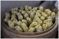 用杠子做面的方法十分独特,和面时用适量的面粉和鸡蛋,不用加水就直接和成面团,然后再用一套多达十三根的大小杠子进行擀面,最主要的工具就是一根大杠子,面团经杠子压多次后加工成面片,接下来把面皮切成细丝面条,加上特制的肉汤,煮面一次一碗起锅,放上佐料,一碗正宗的杠子面就做好了,整个过程大概需要一个半小时左右,面有三种口味,传统、辣鸡、肠旺,其滑、脆、鲜、香的独特口味让人口齿留香,留下深刻的印象。