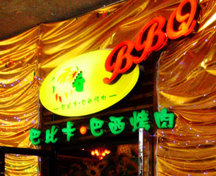 bbq巴西烤肉店是西式自助式餐厅。烤肉分为牛肉、羊肉、猪肉和鸡肉,不同肉类的不同部位都是精选而出,根据客人的要求来选择不同的烤制火候。烤制品种有烤菠萝、烤肠、烤鸡腿、烤牛肩峰、烤牛舌、烤牛腿、烤鸭胸、牛臀帽、羊肉串、火鸡肉、鸡腿、鸡心、牛腿、牛里脊、牛排、蒜茸牛肉、羊排、羊腿等多种肉食和几十余种西式食品,饮料,德国自酿啤酒供消费者选择,还有几十余种西式食品店内的装修极具异国情调,特别是幽幽的灯光和设计简洁的桌椅让人备感温馨。