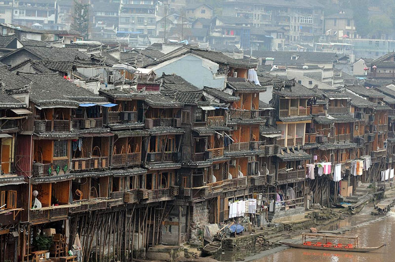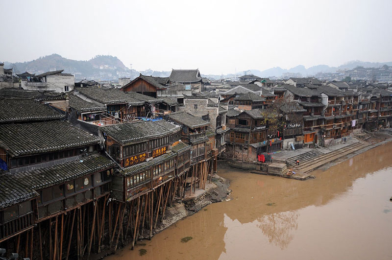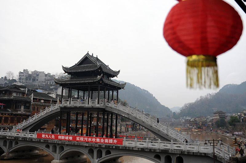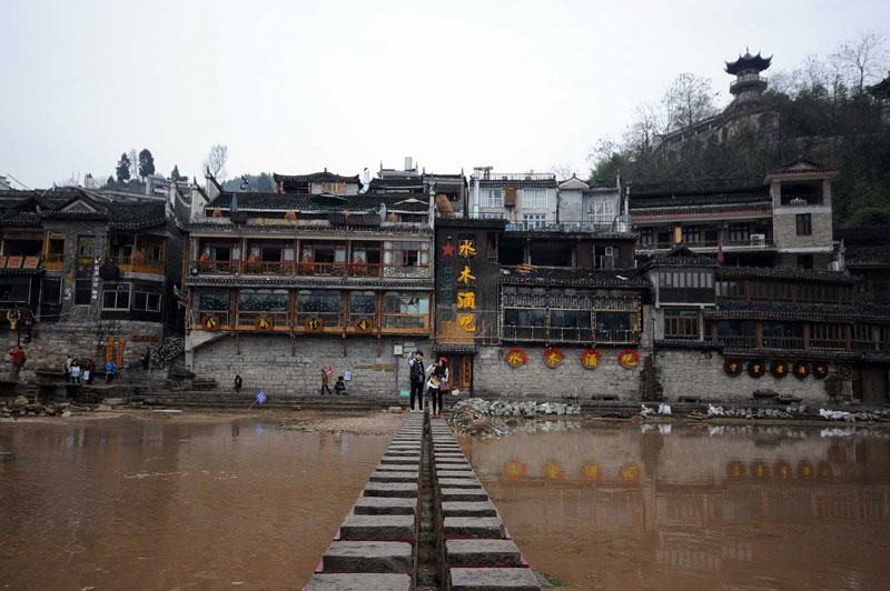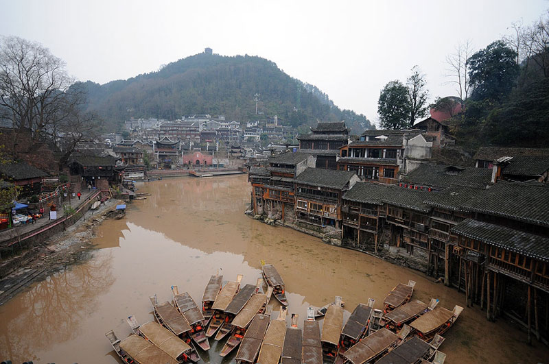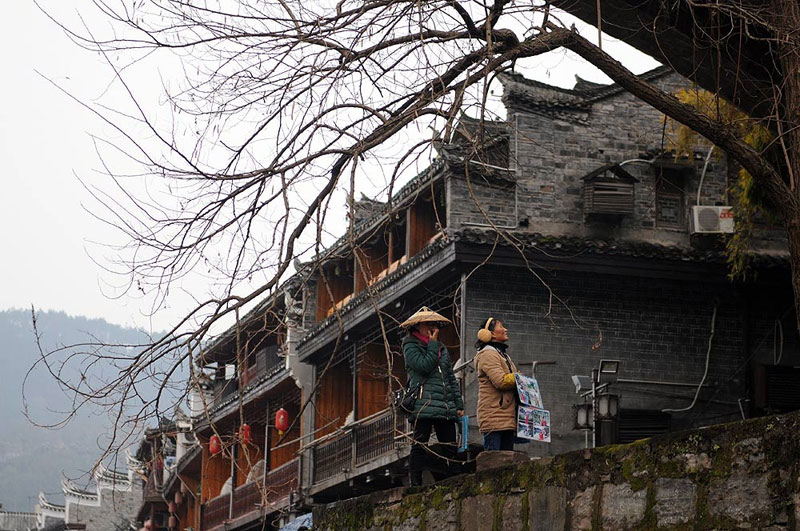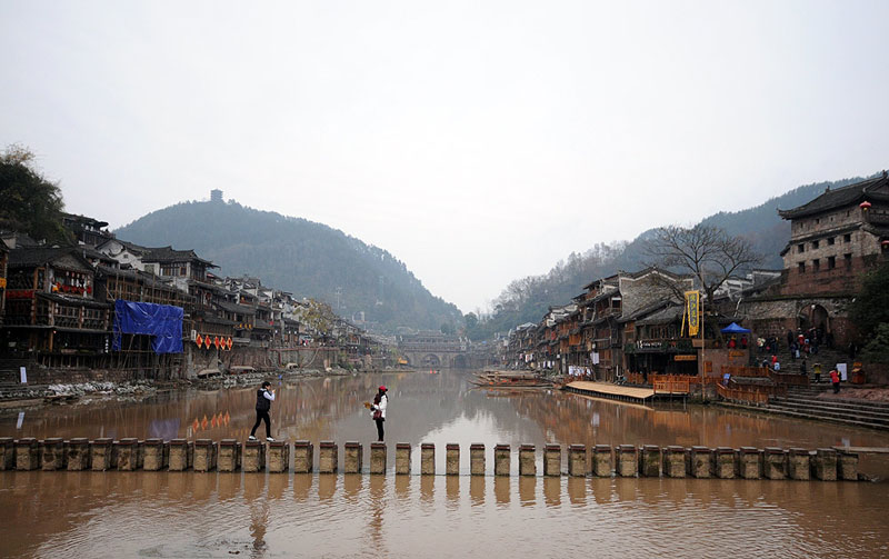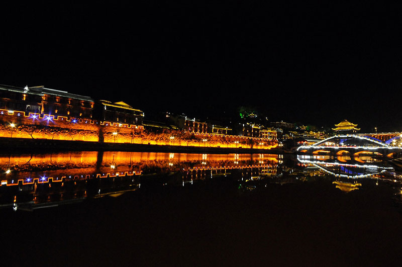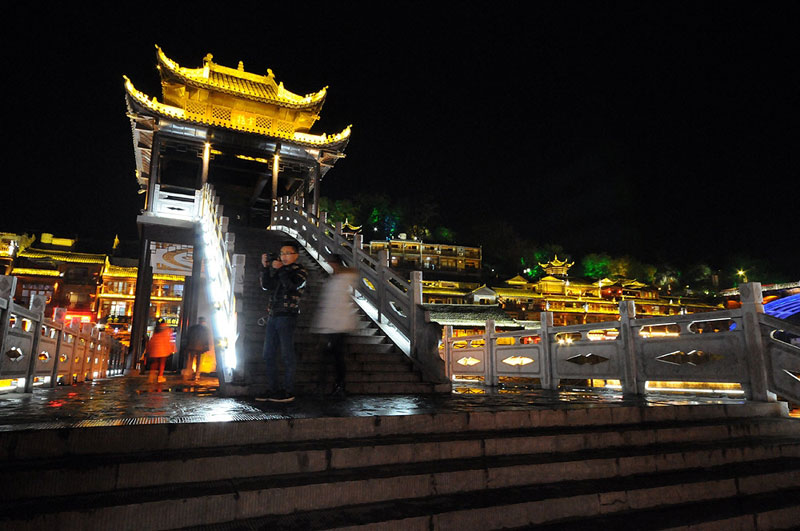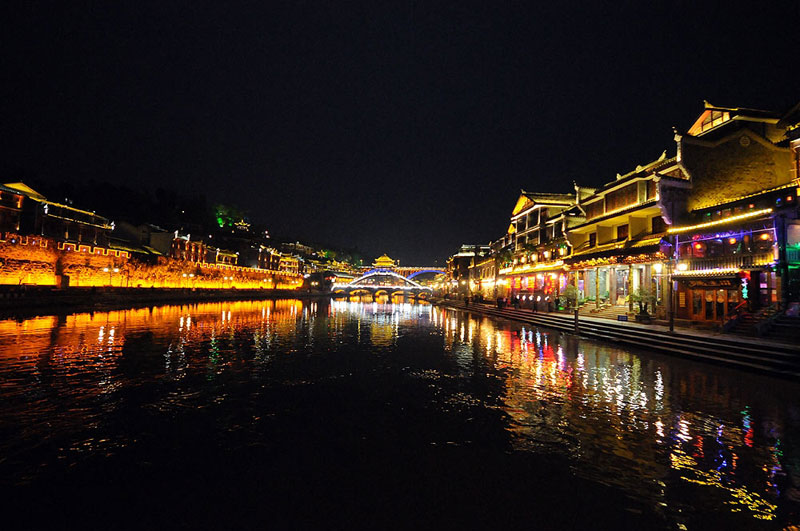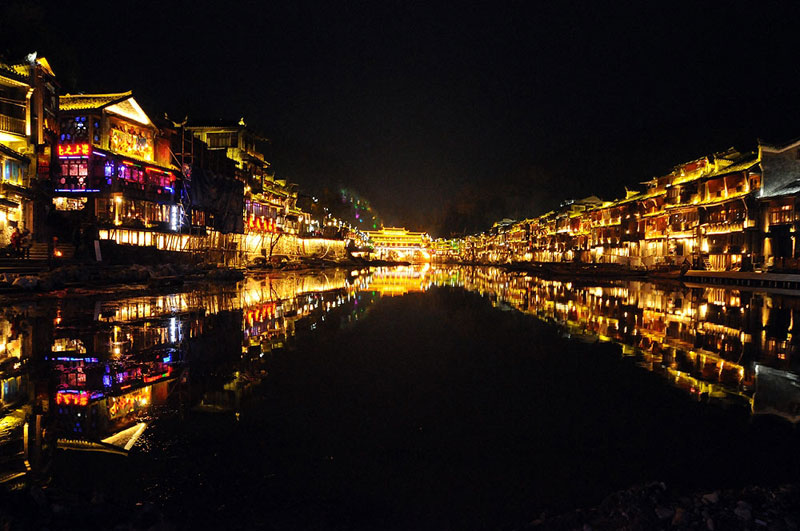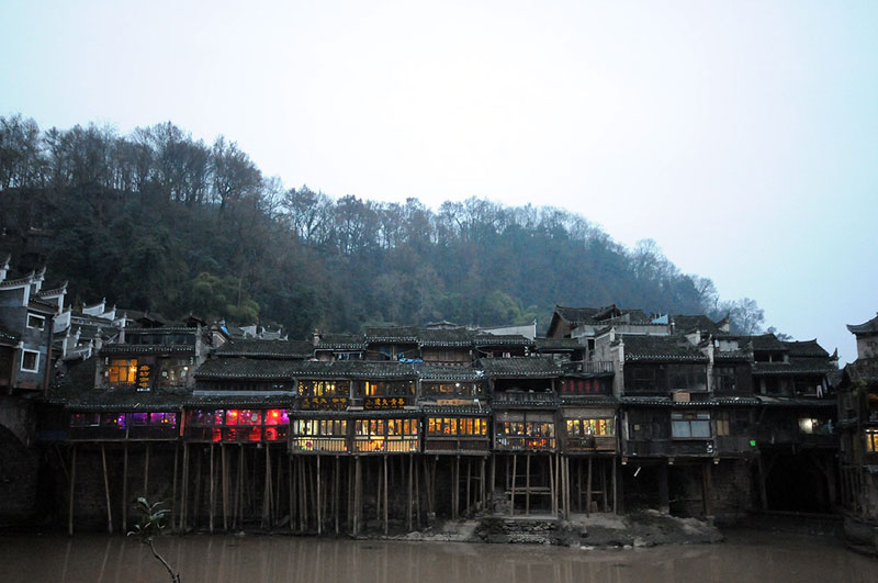 冬天在凤凰古城是个很美的季节,两岸的吊脚楼浮出水面,很多酒吧临江而立,灯光朦胧反照在江面上,风情万种。有雾的时候,泛舟沱江,一种仙境的感觉便油然而生。冬日凤凰美景,值得细细品味。