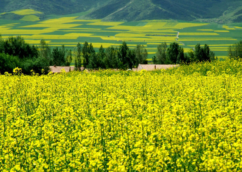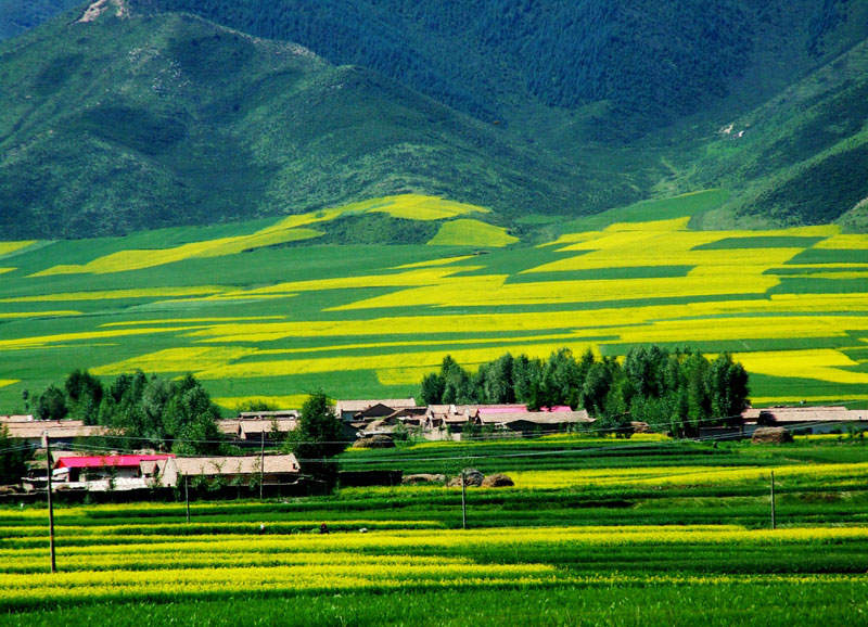 位于河西走廊中段、祁连山北麓的张掖市民乐县,是甘肃河西地区重量级油菜生产基地。 民乐油菜花海主要位于县城东南28公里的南丰乡扁都口旅游度假区。盛夏时节,祁连山前大片油菜花盛开,绵延不断的油菜花海高低起伏,一望无际。站在扁都口制高点眺望,几十万亩的油菜花尽收眼底。