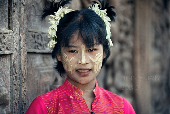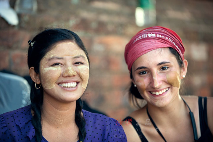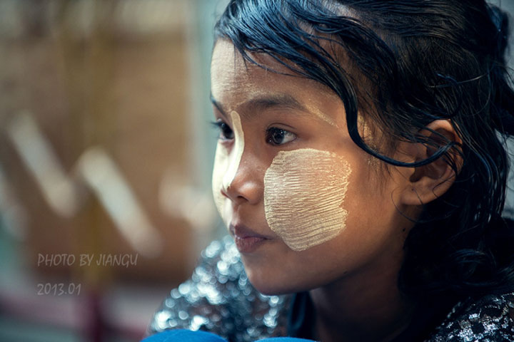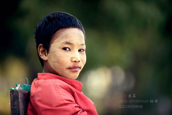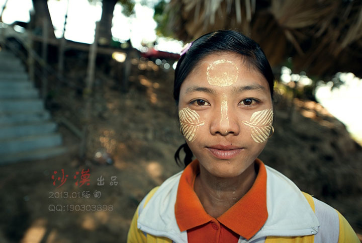 缅甸标志性的习俗景观纯天然防晒美容霜”――“特纳卡”,不仅是保护皮肤的一种办法,也是当地日常生活不可缺少的一部分,在一般的情况下,未婚的男女孩喜欢将“特纳卡”涂满前额和鼻梁,结过婚的妇女则只涂脸的上半部,寡妇只涂脸的一半,老年妇女则随心所欲,可涂可不涂。