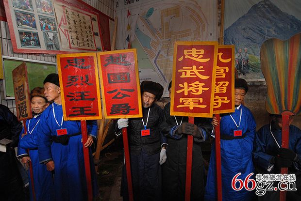 卫队由手举“肃静”“回避”牌和由手持斧、矛、刀、枪的八位老者组成的。