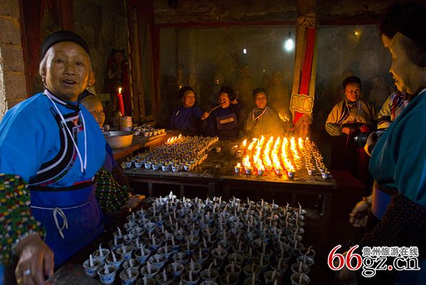 寺庙里面的油灯已经排得满满的,等待各寨村民点灯许愿。
