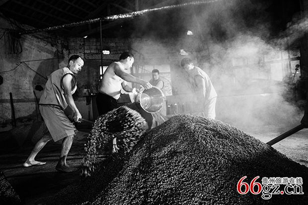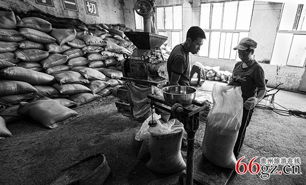 《下沙》-重阳节过后,赤水河谷的高粱已经成熟并收割,茅台镇大大小小的酒厂和茅台酒厂一样开始了新一轮的酿酒工艺,这就是“下沙”,“沙”即高梁,因红缨子糯高粱颗粒与赤水河里的沙粒色泽相似,当地人习惯称高粱为沙,也叫“投料”。在整个生产过程中,重阳节前后分两次投料,所以叫“重阳下沙”。