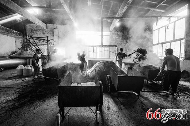 《制酒》以茅台酒为代表的茅台镇的酒厂的酿制工艺都采用著名的“回沙”工艺,即同一批原料来来回回地反复蒸煮。发酵、取酒,直到把粮食里的酒榨干为止。一个完整的回沙过程就是茅台镇酱香酒的一个生产周期,其中一个重要的环节就是“九次蒸煮、八次发酵、七次取酒”。