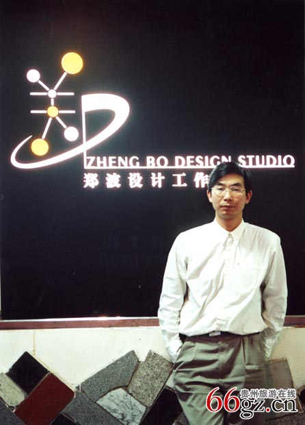 2001年郑波在其创办的工作室前留影