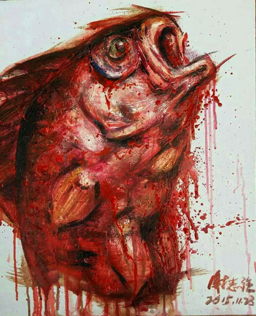 《鱼·系列》,丙烯画,尺寸:60×40cm。